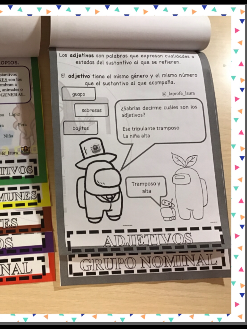 Los divertidos personajes de Among us nos explican a través de diálogos y esquemas lo que son los suntantivos y el grupo nominal.